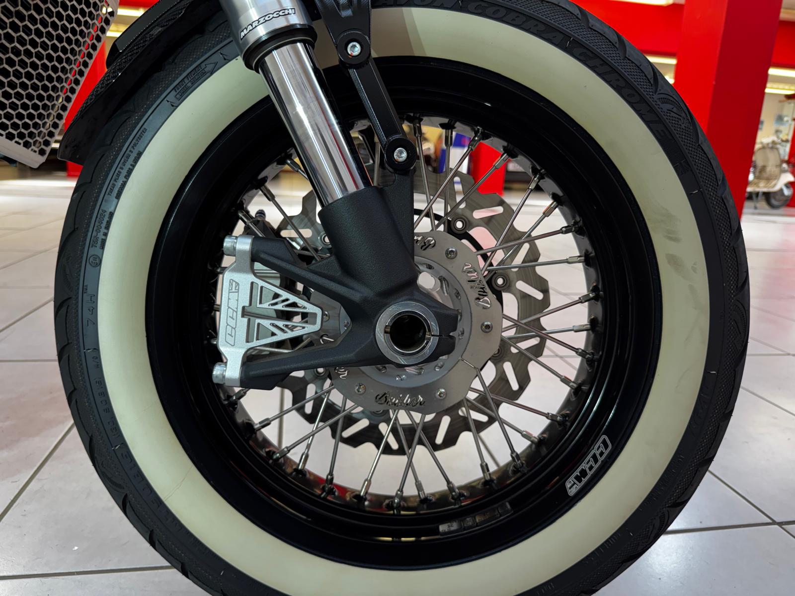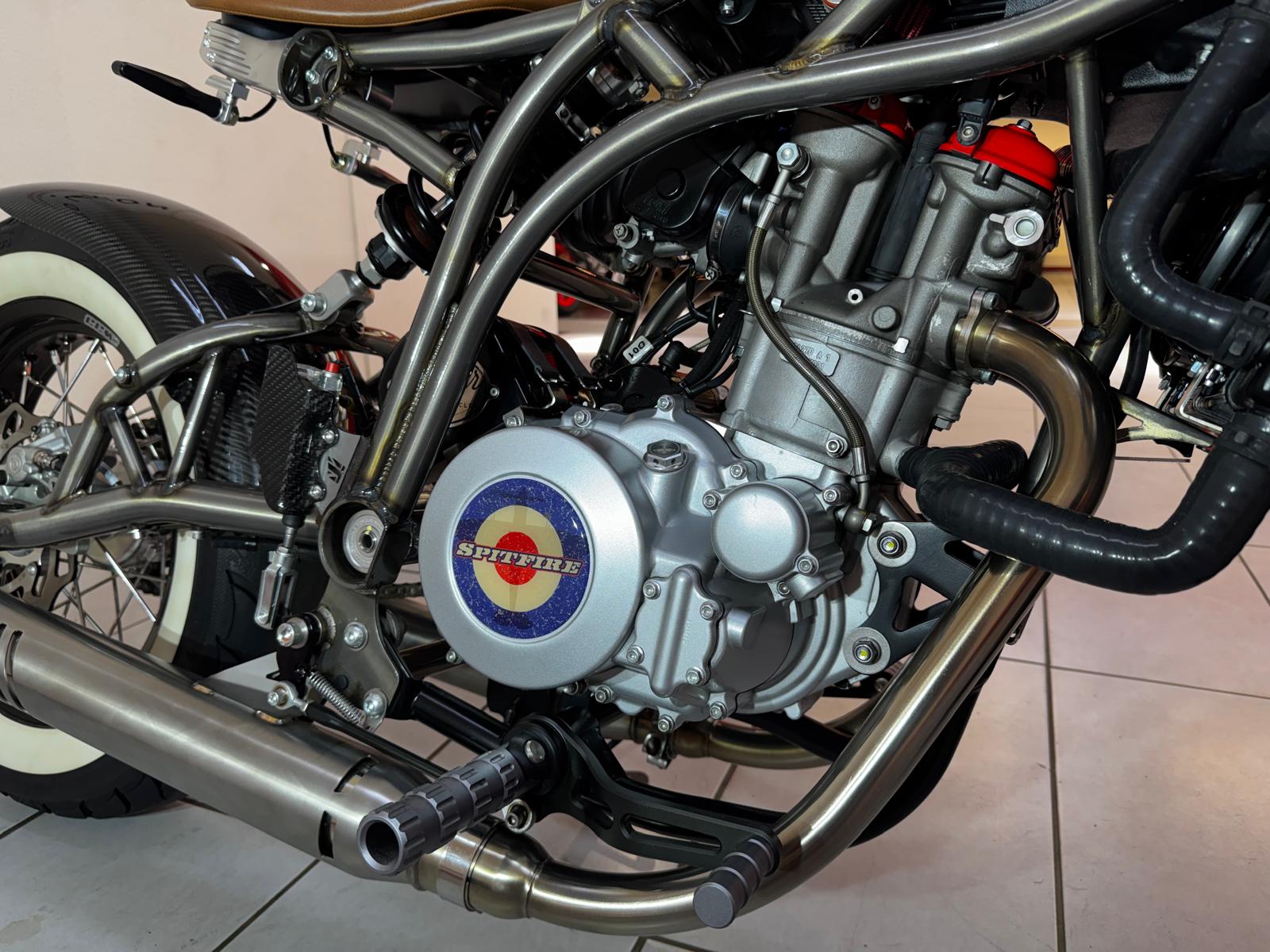 With low weight, no faffy electronics and a snappy single-cylinder engine the Spitfire delivers unfiltered motorcycling. It doesn’t just look like a custom, it rides like a perfectly executed special as well.